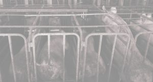 肉用の子豚を産むために飼育される母豚たちは、振り向くことも真横を向くことも、歩くことも、仲間と触れ合うことも出来ずに、殺されるまでの一生を過ごしています。